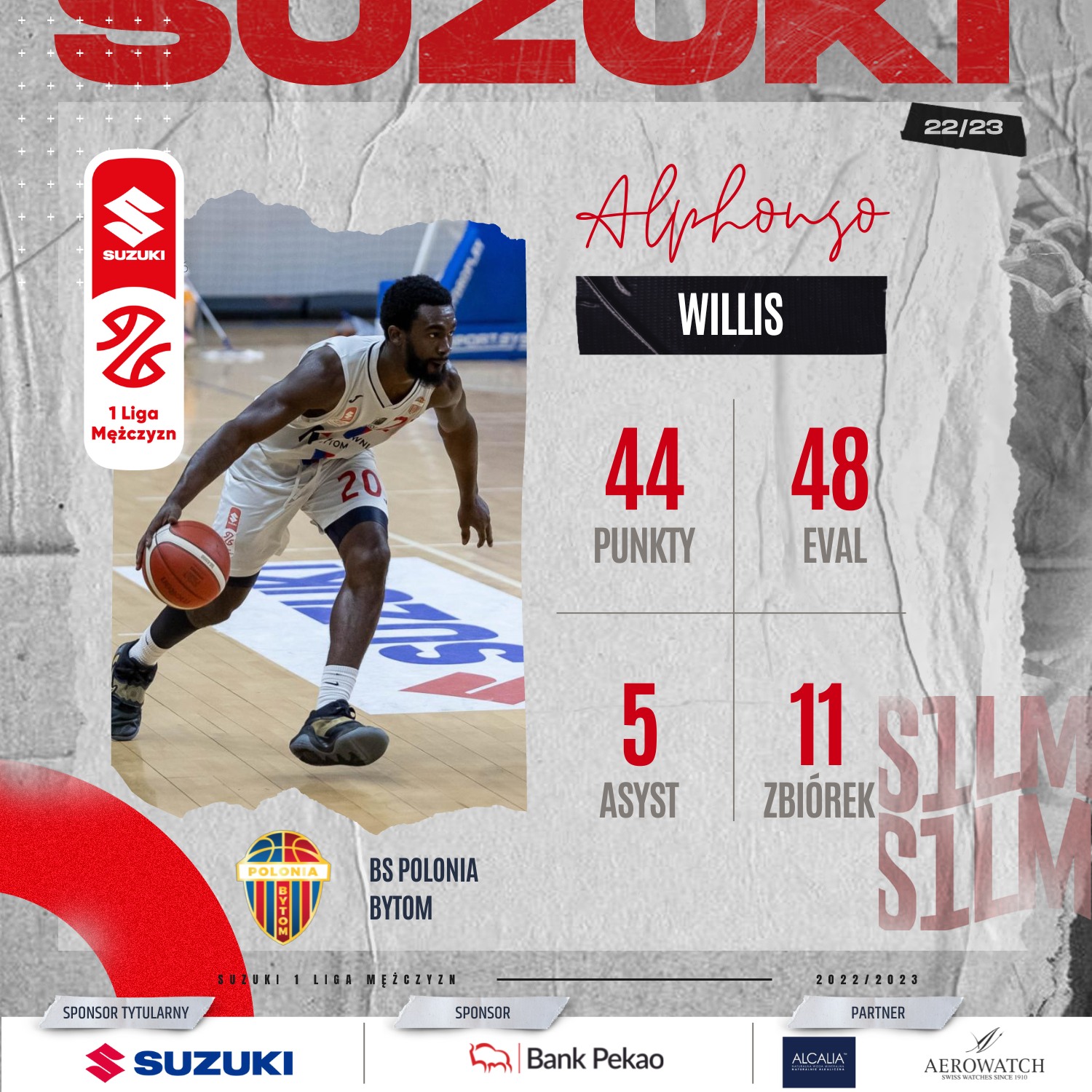Dorobek Alphonso Willisa to rekord tego sezonu Suzuki 1 Ligi Mężczyzn. Do tej pory liderem był Filip Małgorzaciak, który w połowie stycznia rzucił w Zgorzelcu 39 punktów. Tamto spotkanie zakończyło się jednak dogrywką.