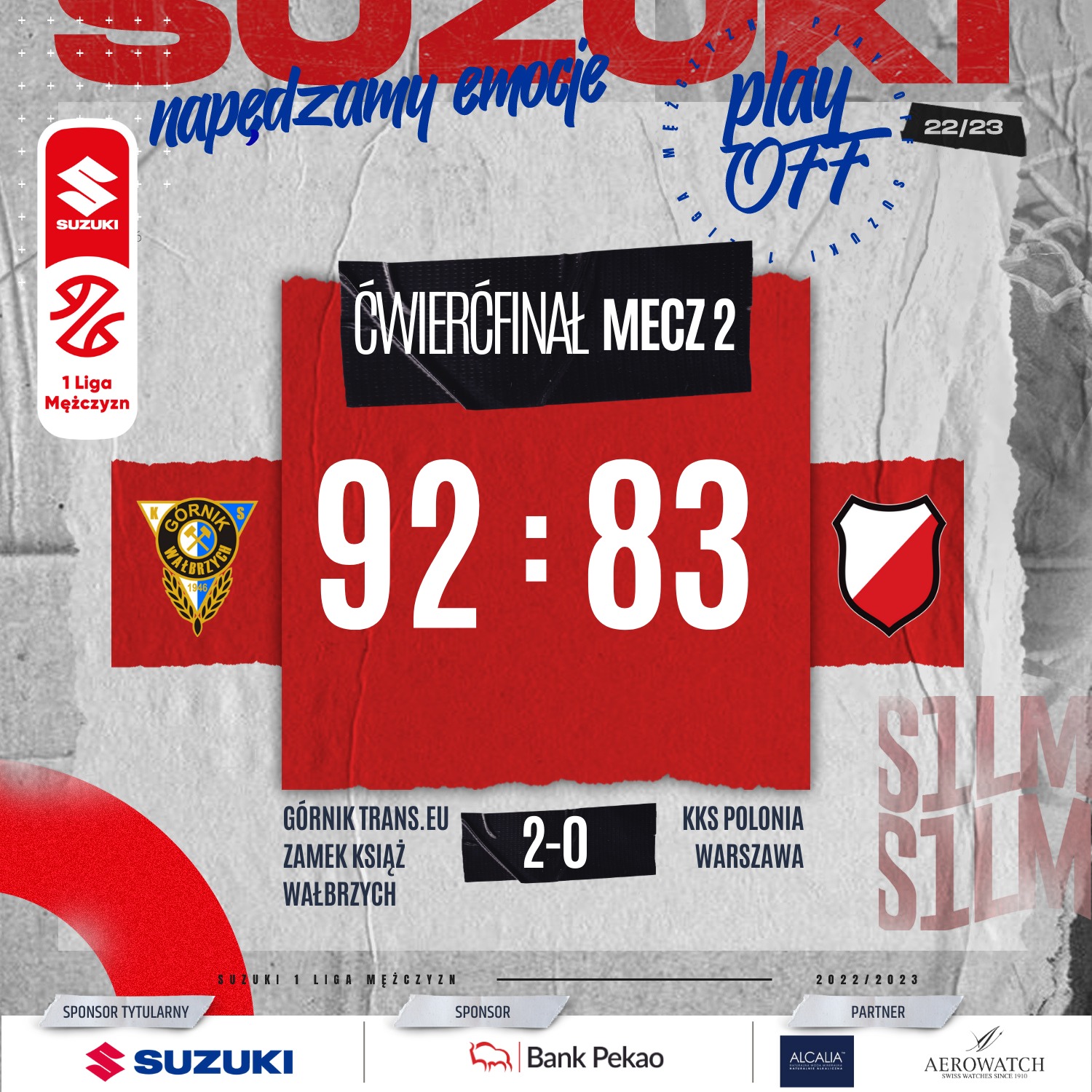 Stan rywalizacji 2-0 dla Górnik Trans.eu Zamek Książk Wałbrzych. Kolejne spotkanie tej pary odbędzie się w czwartek 20 kwietnia o godzinie 20:00 w Warszawie.