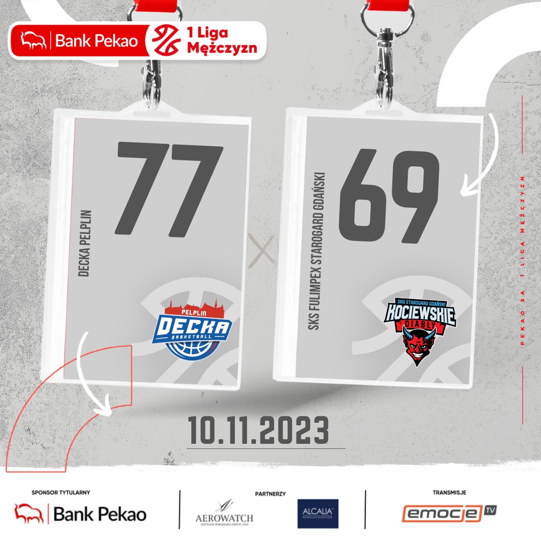 Powody do radości mają koszykarze Decka Pelplin, którzy na koniec pierwszej kwarty przegrywali 16:25, ale kolejne dziesięć minut wygrali aż 27:9, w jednym z fragmentów zawodów rzucając 14 punktów. Gospodarze nie tylko popełnili mniej strat niż rywale, ale wymusyli też więcej przewinień, po których mieli szanse wykonywać rzuty wolne.