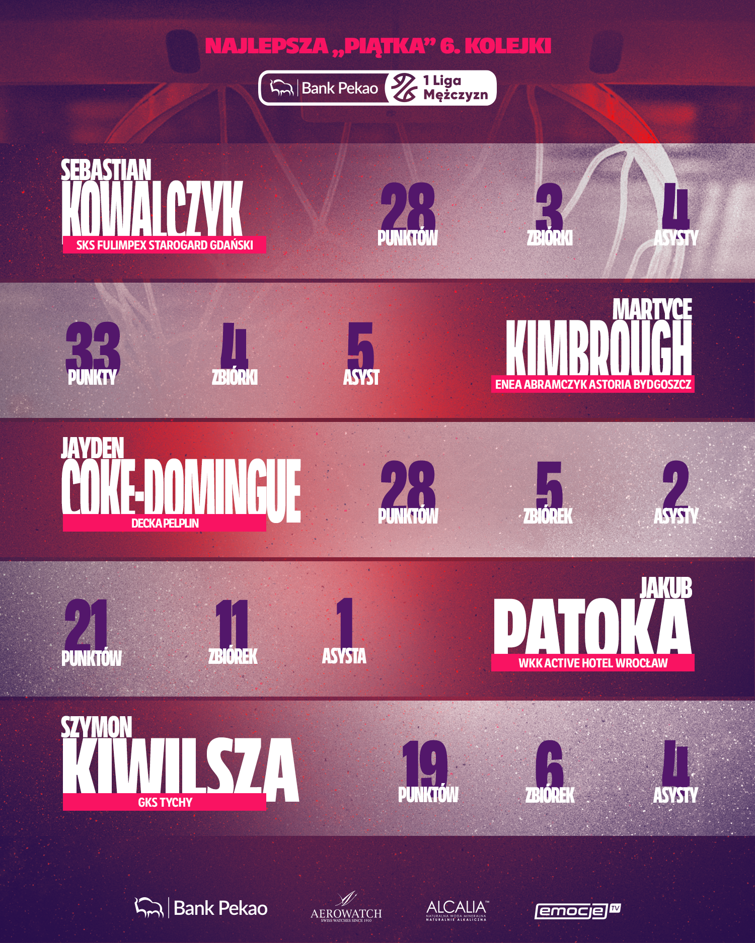 - w zestawieniu znajdą się zawodnicy z drużyn, które w danej kolejce wygrały swoje mecze. Wyjątkiem będzie tu tylko osiągnięcie przez zawodnika wyjątkowych statystyk indywidualnych, pomimo porażki jego drużyny – np. rekord punktowy sezonu, triple-double itd.
