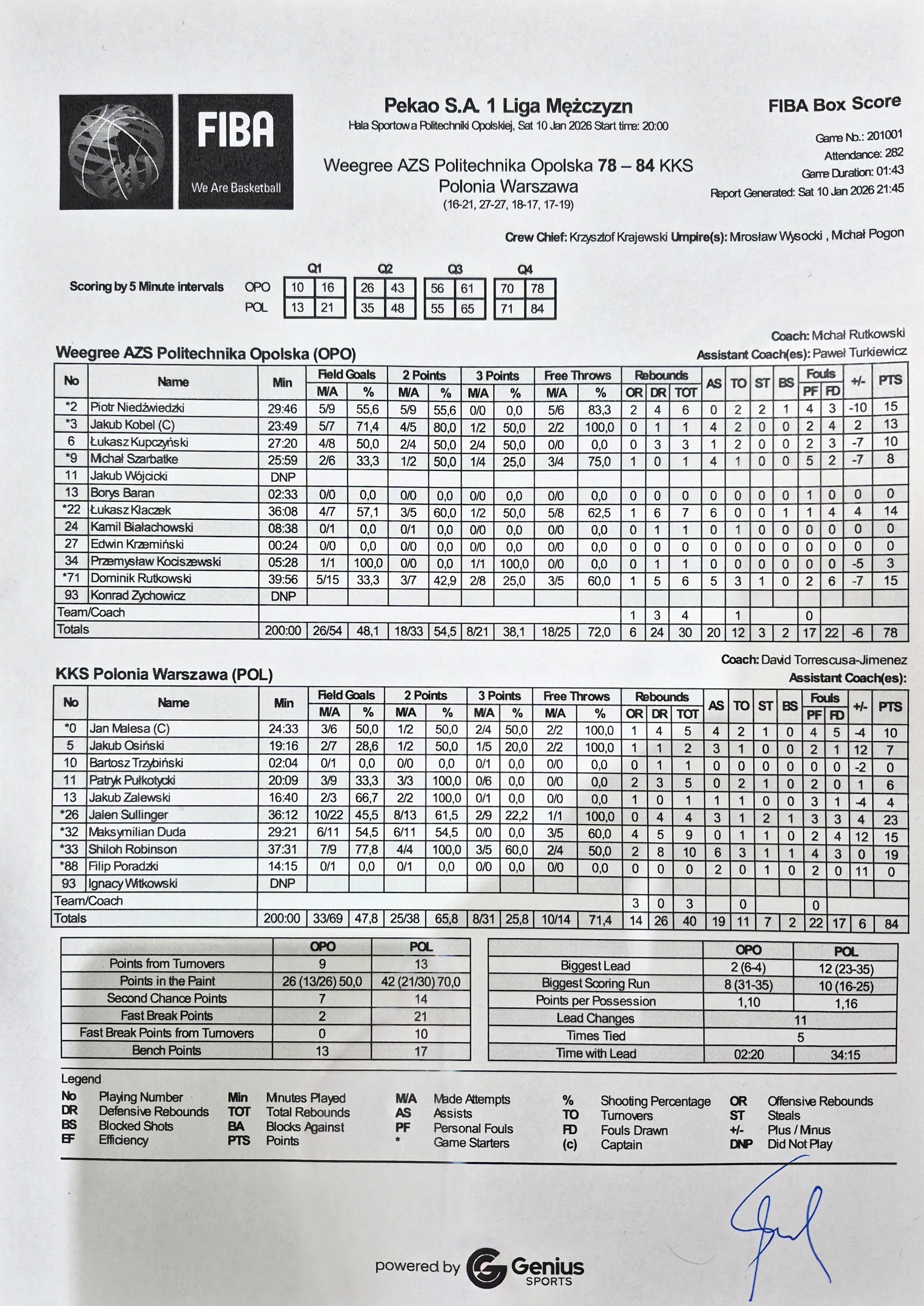 | 22, Ł. Kłaczek, wygrany rzut sędziowski | 09:58:00 | |||