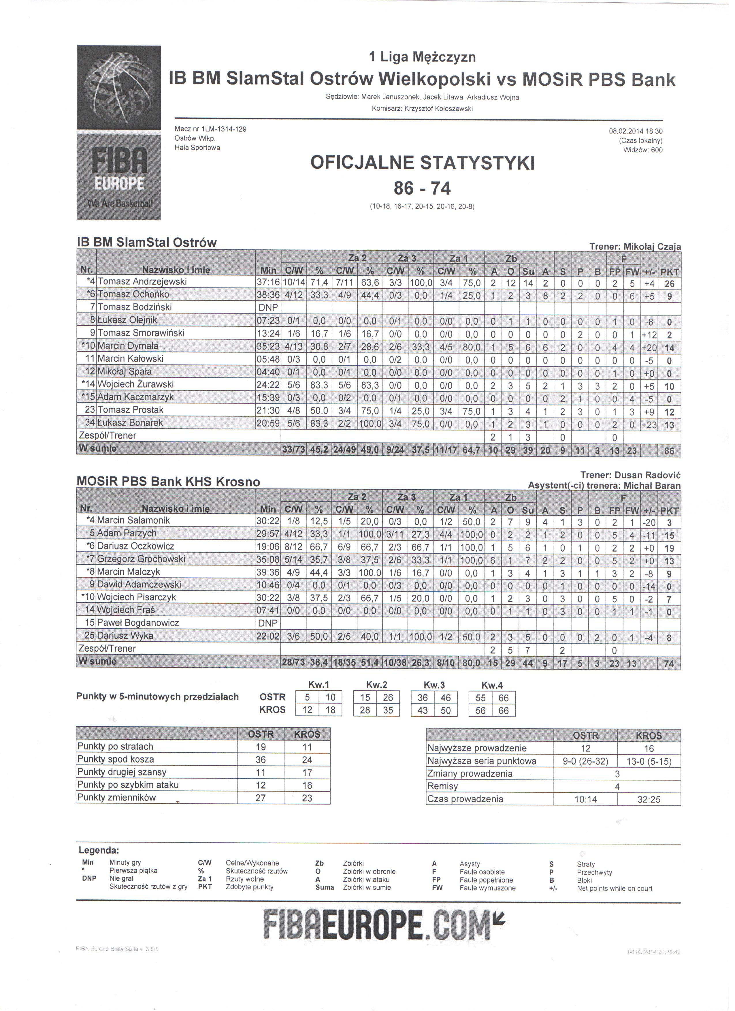 A. Parzych - faul osobisty (5 F, 8 Faul zespołu). Faulowany: M. Dymała. Zmiana - A. Parzych ZEJŚCIE, W. Fraś WEJŚCIE |