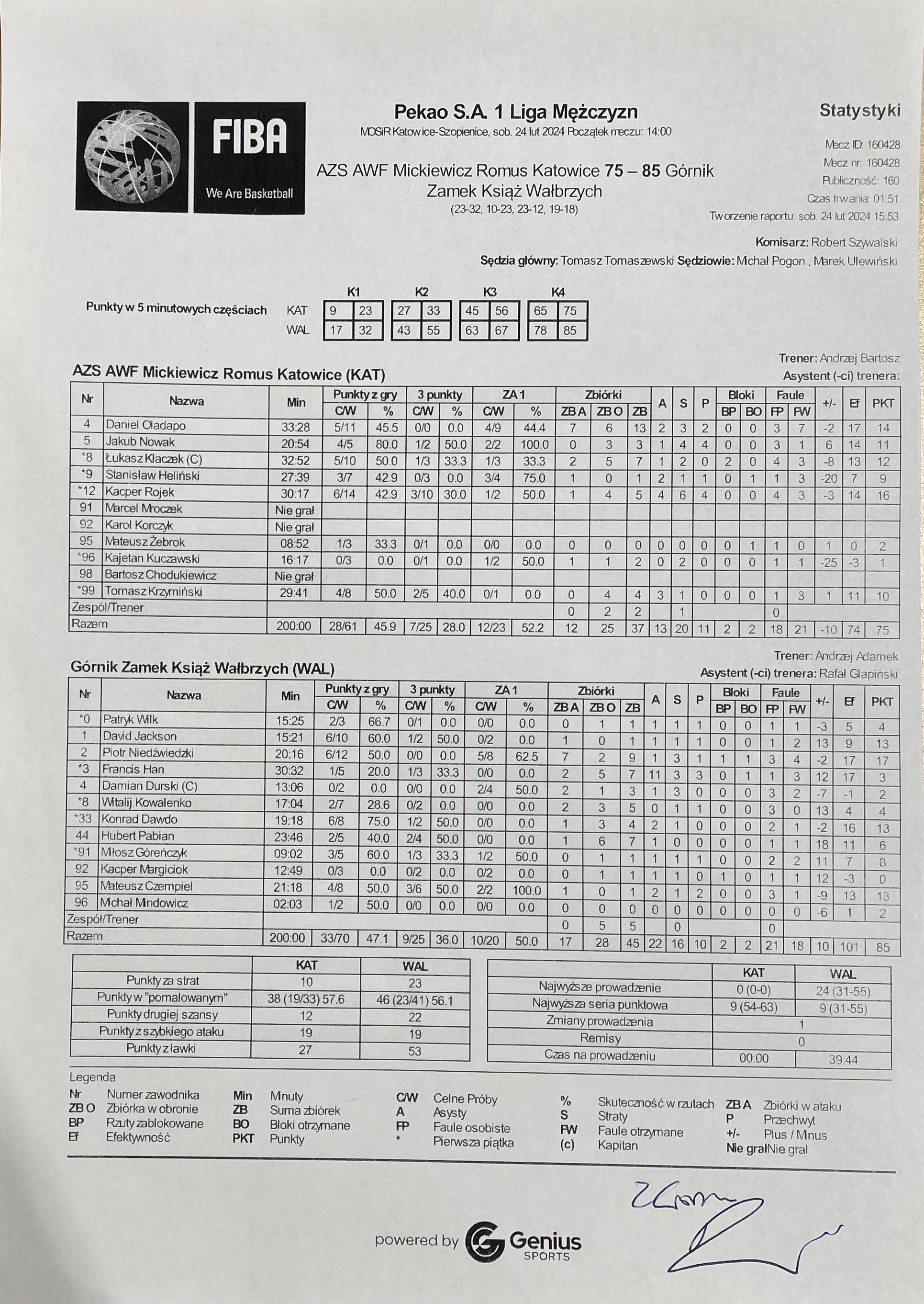 | 12, K. Rojek, faulowany | 08:54:00 | |||