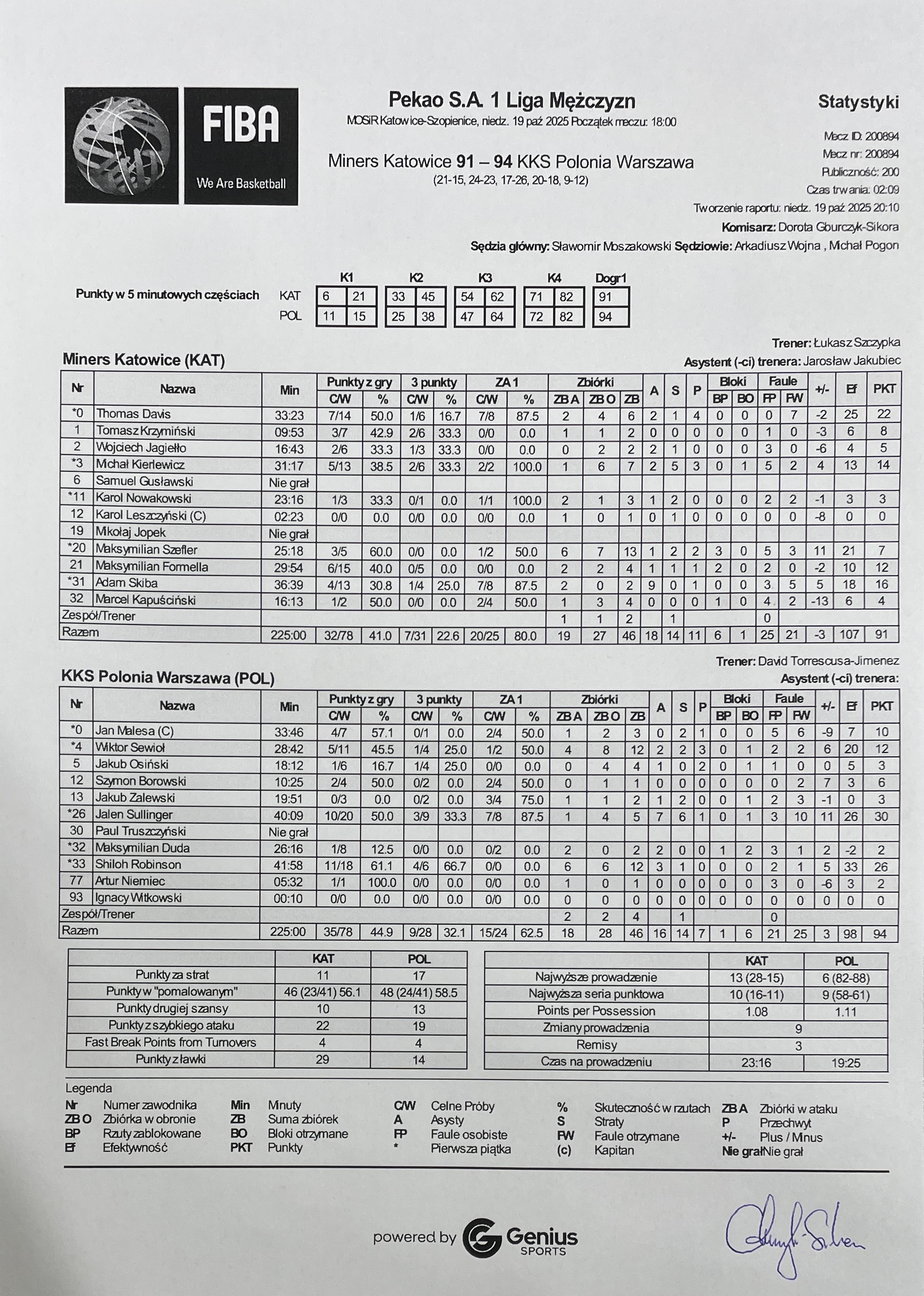 | 09:59:00 | 32, M. Duda , przegrany rzut sędziowski | |||
